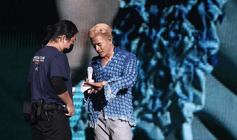 事发时,郭富城正要拿起麦克风说话,一名工作人员冲上台,拿纸巾给他擦手,令全场歌迷好奇,天王究竟怎么了?