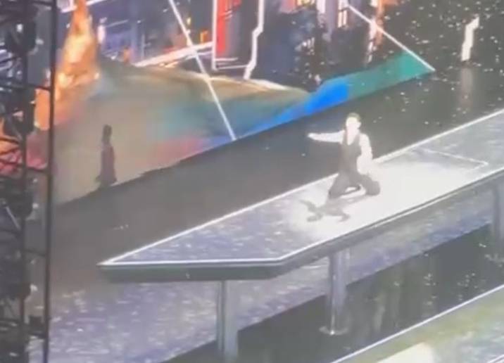 城城跳完舞,往后退场时,不小心踏空,跌落舞台,现场一声巨响,吓坏歌迷。