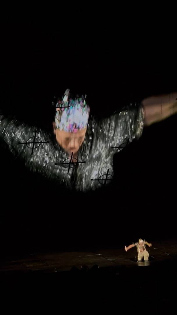 画面可见,他于大概三米高的升降台上表演,按照安排,他要跑向升降台的边缘。