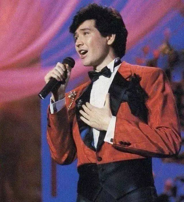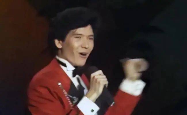 他身穿红黑色礼服,一头浓密的黑发,立体的五官,拿起话筒,给姥姥和妈妈以及全国的观众带来了《故乡的云》。