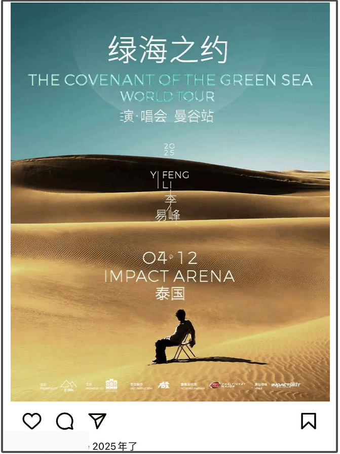 最近几年不少明星都开始有开演唱会的打算,这似乎也给李易峰提供了新思路,2025开年就官宣自己要在泰国开演唱会,海报都做好了,看来是筹备已久。