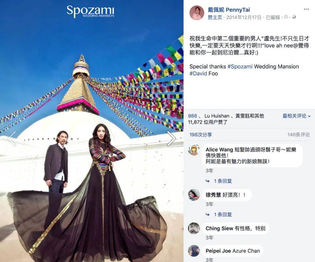 不久之后,戴佩妮在社交软件上放出两个人的结婚照。