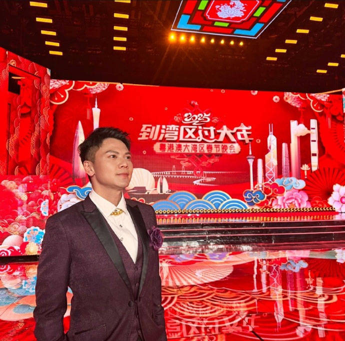 昨天莫家淦在社交网晒出照片,只见他穿着紫色西装,内搭白色衬衫和珠链,外套上还有一朵大襟花,打扮相当型男。他笑着调侃说:“穿得像新郎哥一样去广州,干嘛呢?”原来是受邀担任广东卫视春晚的主持人:“又一成就解锁!去年有幸可以参与广东卫视《到湾区过大年》的表演嘉宾,今年则是以主持人的身份,全程使用普通话主持,充满挑战!能以香港代表身份,与粤港澳两地的主持人合作,非常难得!”