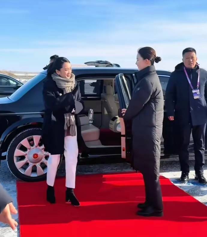 佩通坦上车的时候,还特意跟随行人员告别,他们坐的车也非常豪华,佩通坦气质还是比较低调的,她的衣着打扮都是很有内涵的高级,也特别符合她的身份。
