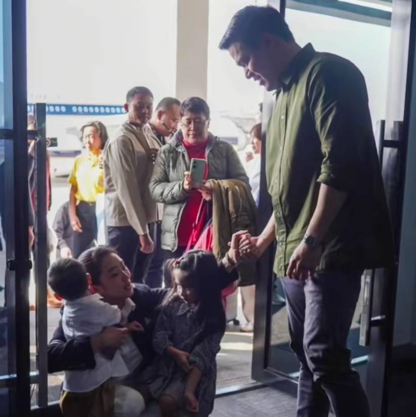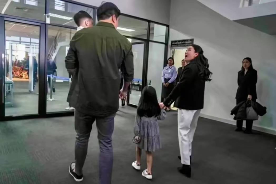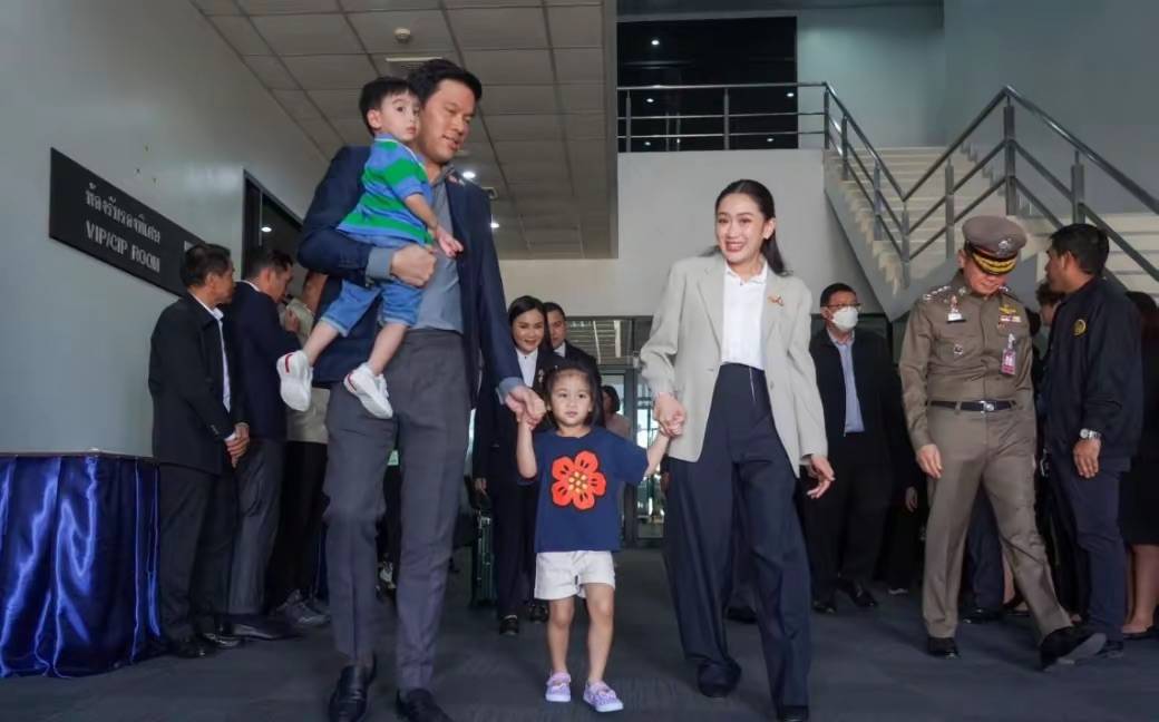 抵达泰国后,佩通坦见到了接机的老公、孩子,她紧紧地的抱着两个孩子、满眼的爱意。是泰总理、也是两个孩子的妈妈。