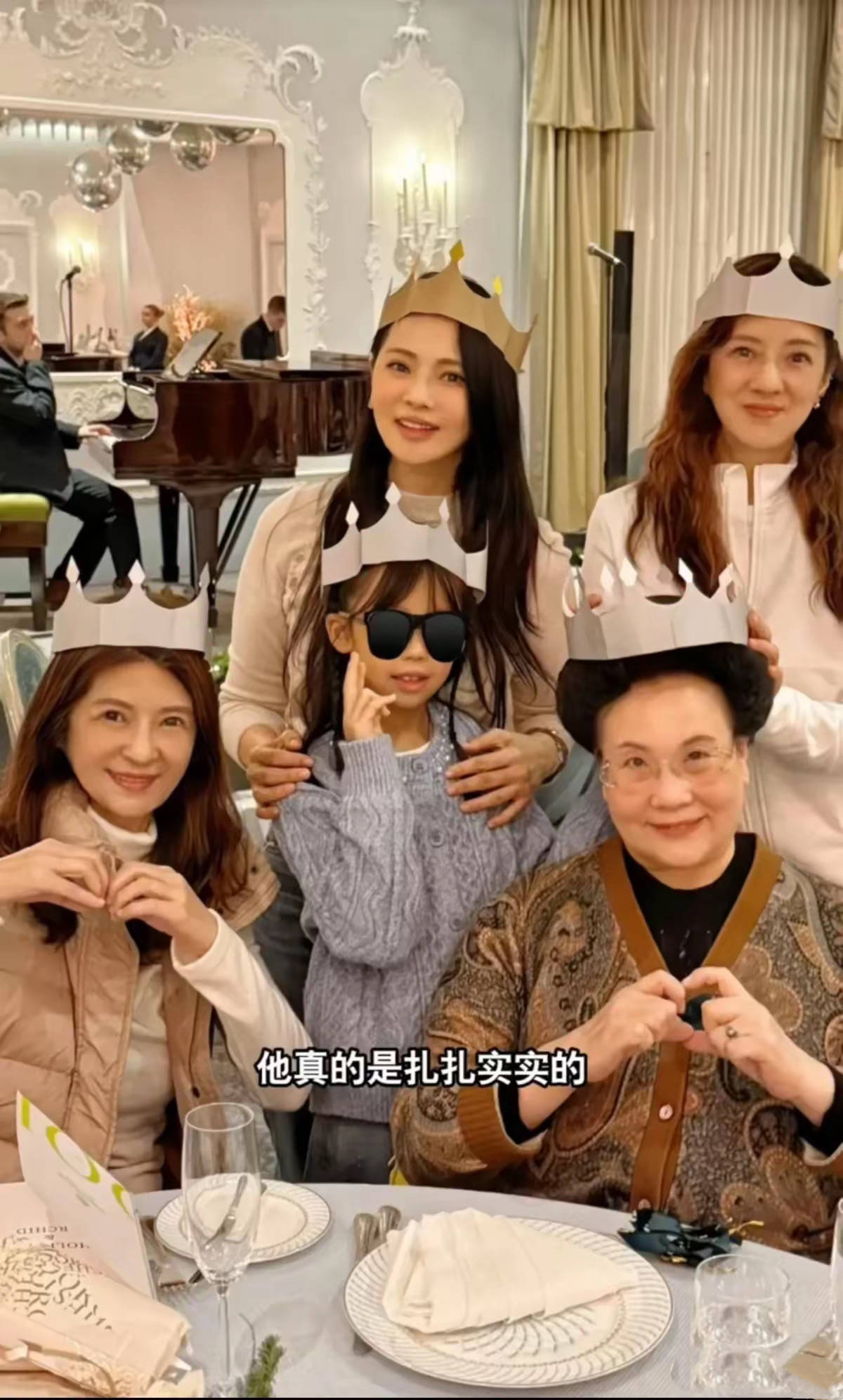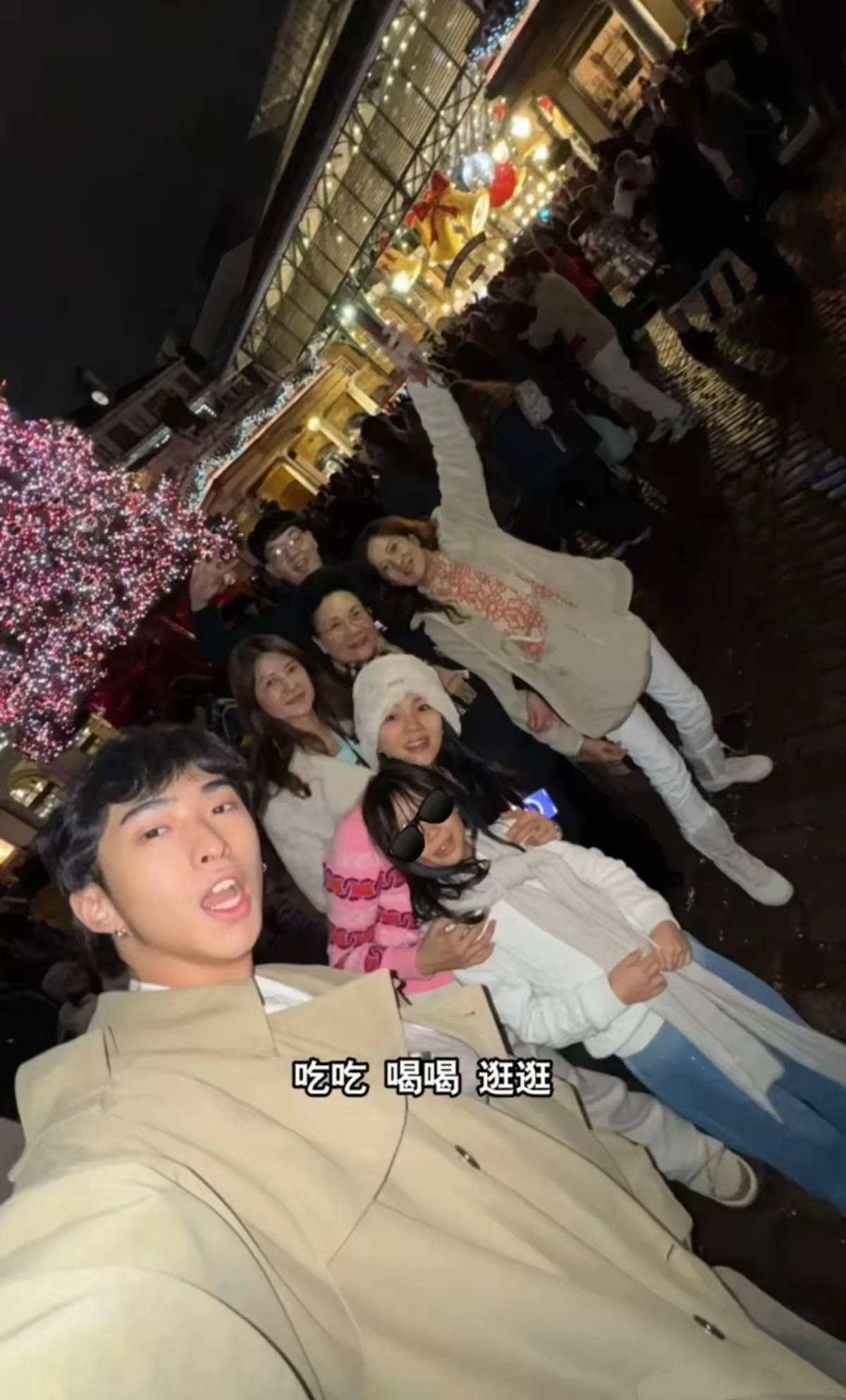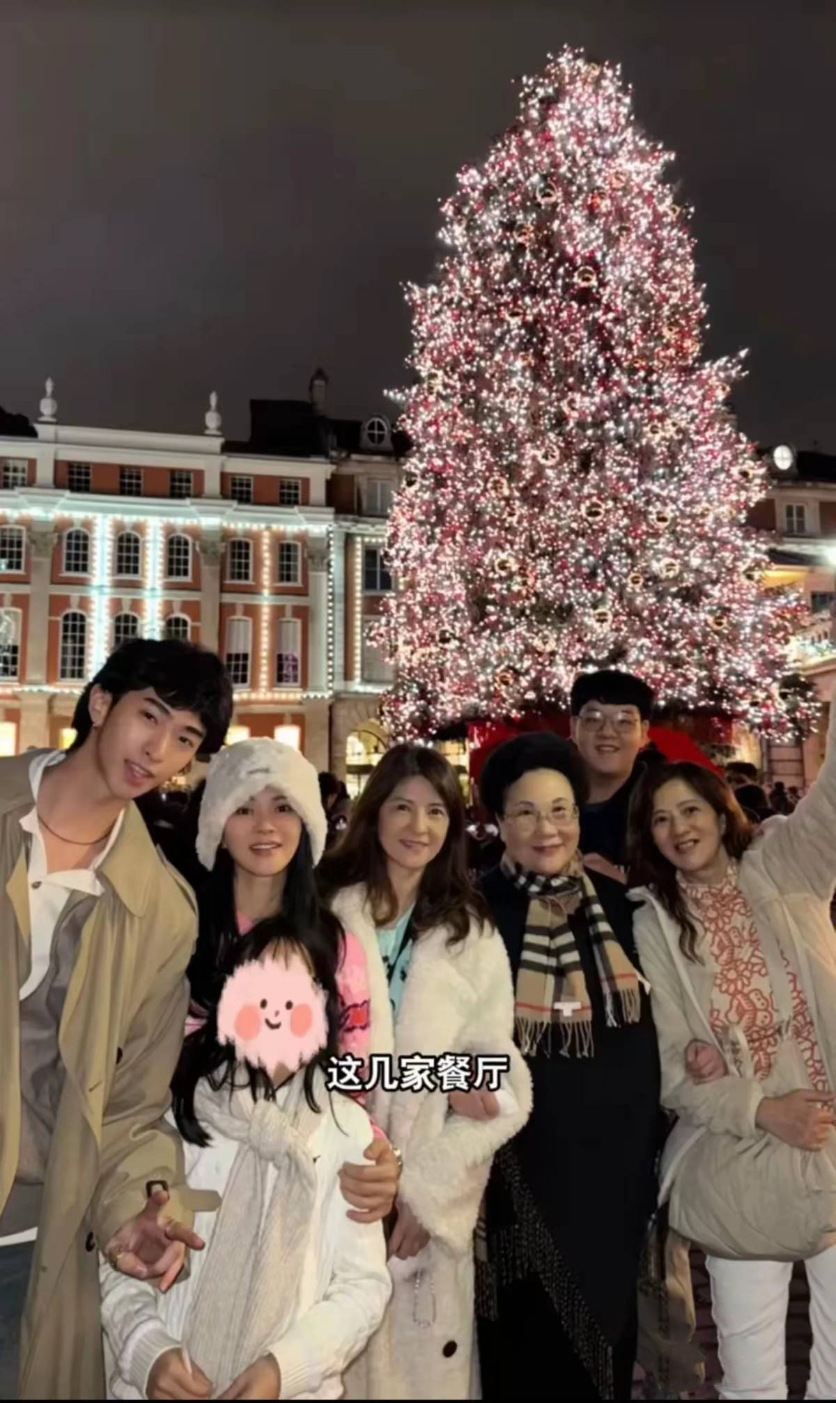 婆婆穿黑色大衣,站在C位,双手挽着伊能静的姐姐。这画面真的太有爱了,伊能静戴着毛茸茸的白色帽子、显得特别年轻。