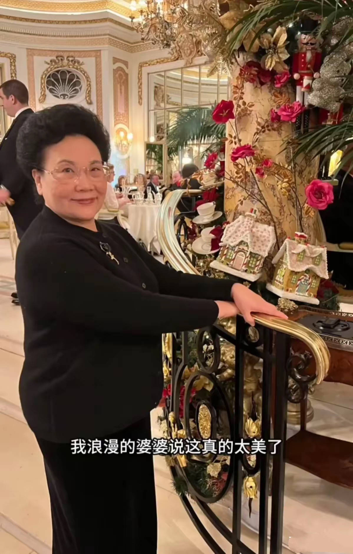 她们包了特别豪华的皇室餐厅,内景都是搭建的、节日氛围很浓厚。婆婆一直感叹说这里太美了,在这里吃饭很开心,然后疯狂的拍照。