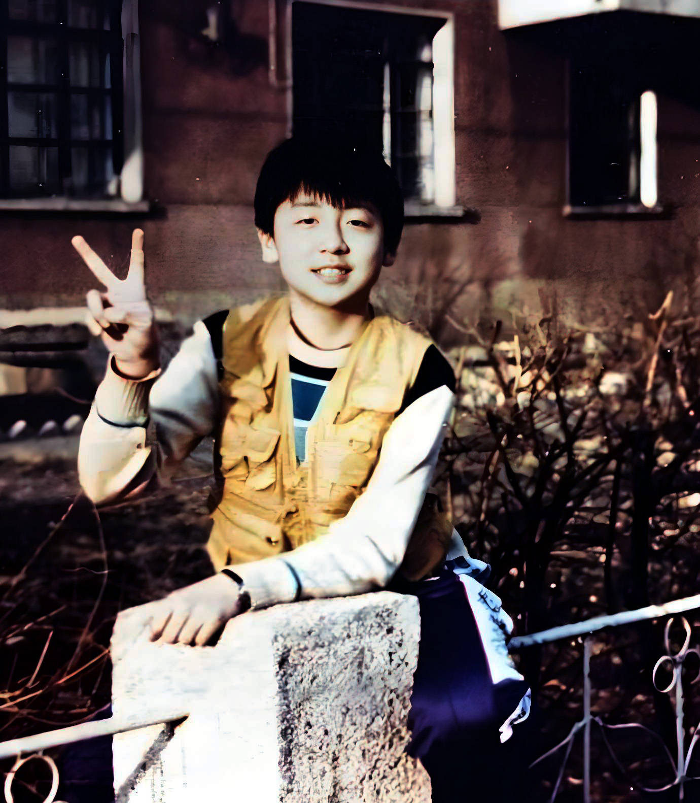 吕晓禾在湖南浏阳拍摄影片《少年雷锋》时,与他配戏的是一对双胞胎小演员。