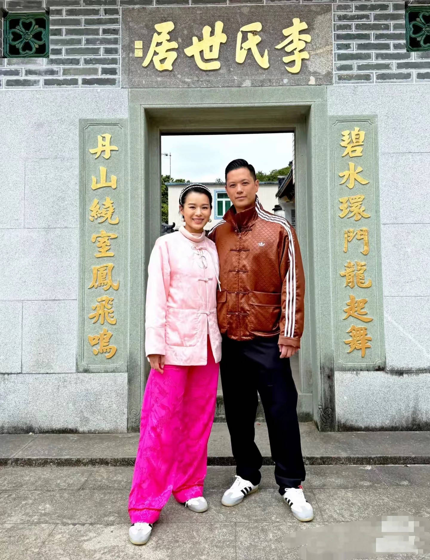 夫妻二人在家族的祠堂前,也拍下过很多照片。每次来到这里,胡杏儿都会穿上民族风的服饰,特别有入乡随俗的意思。