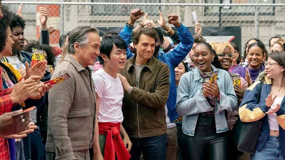 主角并非海报上占据C位的成龙,而是一位初抵纽约的北京少年——成龙的角色更像一位功能性引路人,戏份有限且深度不足,其作用几乎被严格限定在“功夫导师”的刻板框架内。