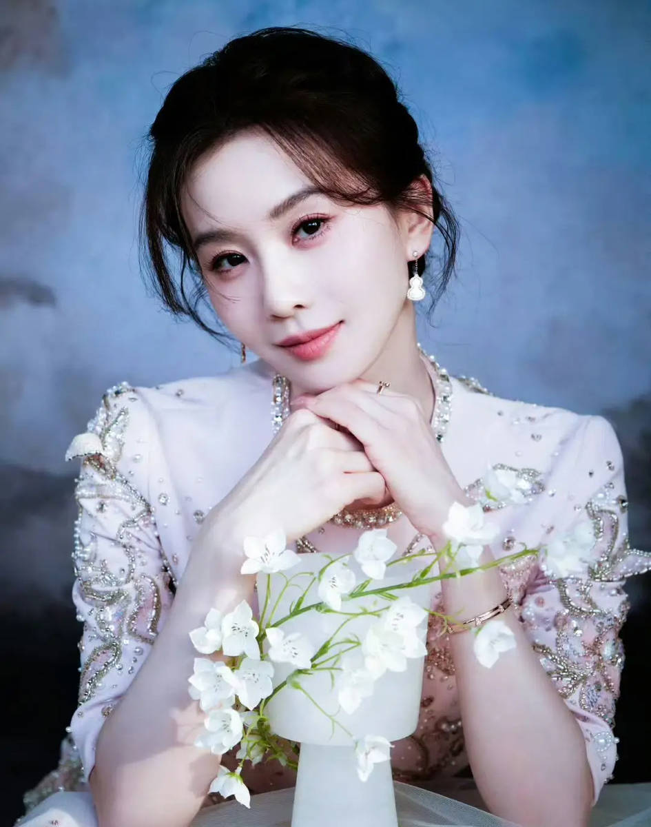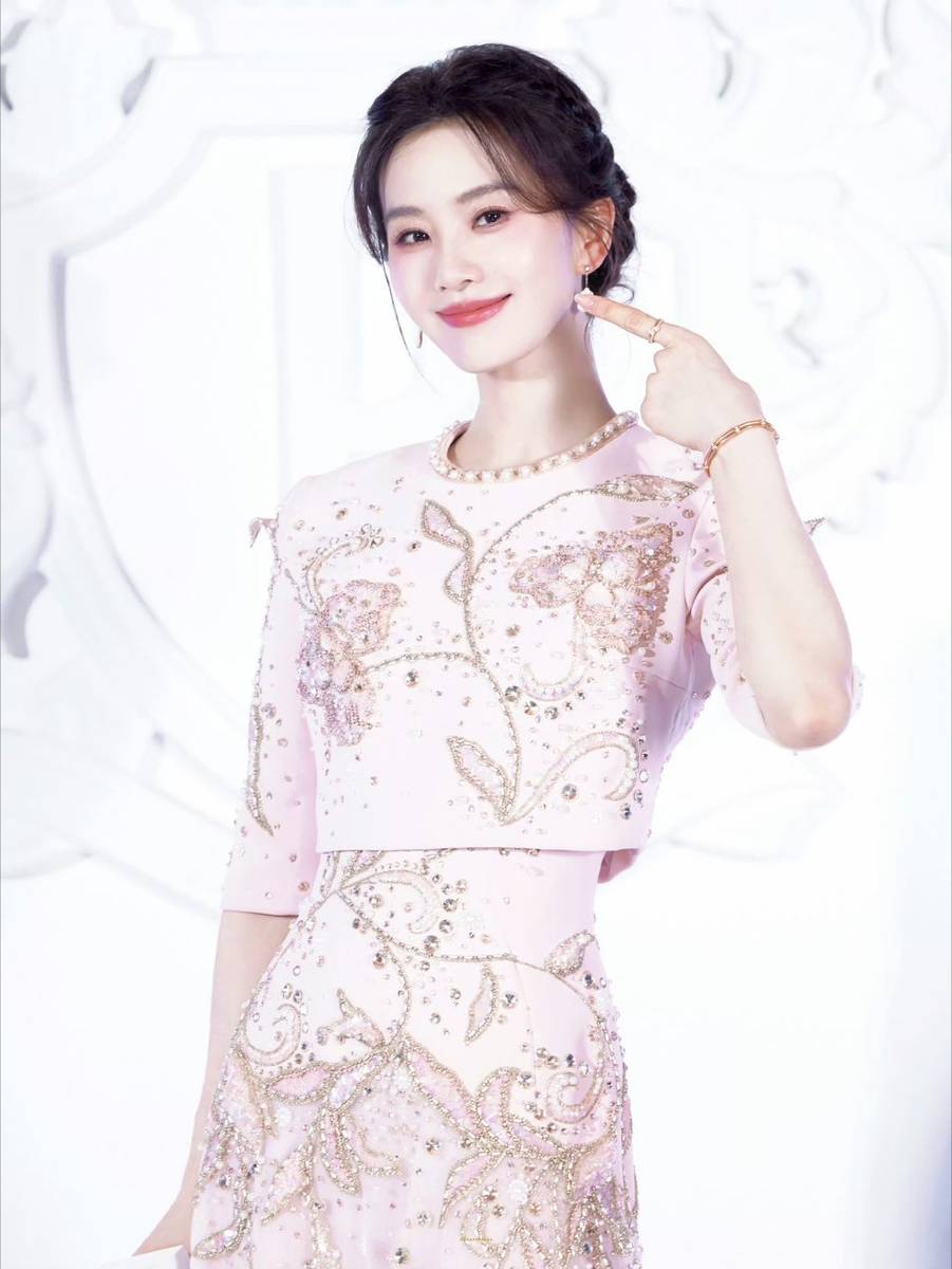 造型的成功离不开细节的精妙搭配。刘诗诗选择将长发全盘起,露出光洁的额头和优美的天鹅颈,仅用一枚镶嵌珍珠的发簪固定,既呼应了服饰的古典韵味,又避免了造型的繁琐。妆容上她采用了淡雅的中式妆容,细眉如黛,眼尾微微上挑却不张扬,唇间一抹豆沙色温润柔和,与整体造型的气质完美契合。手部佩戴的银质手镯与颈间的项链形成呼应,没有过多华丽配饰的堆砌,反而更凸显出“清水出芙蓉”的自然之美。