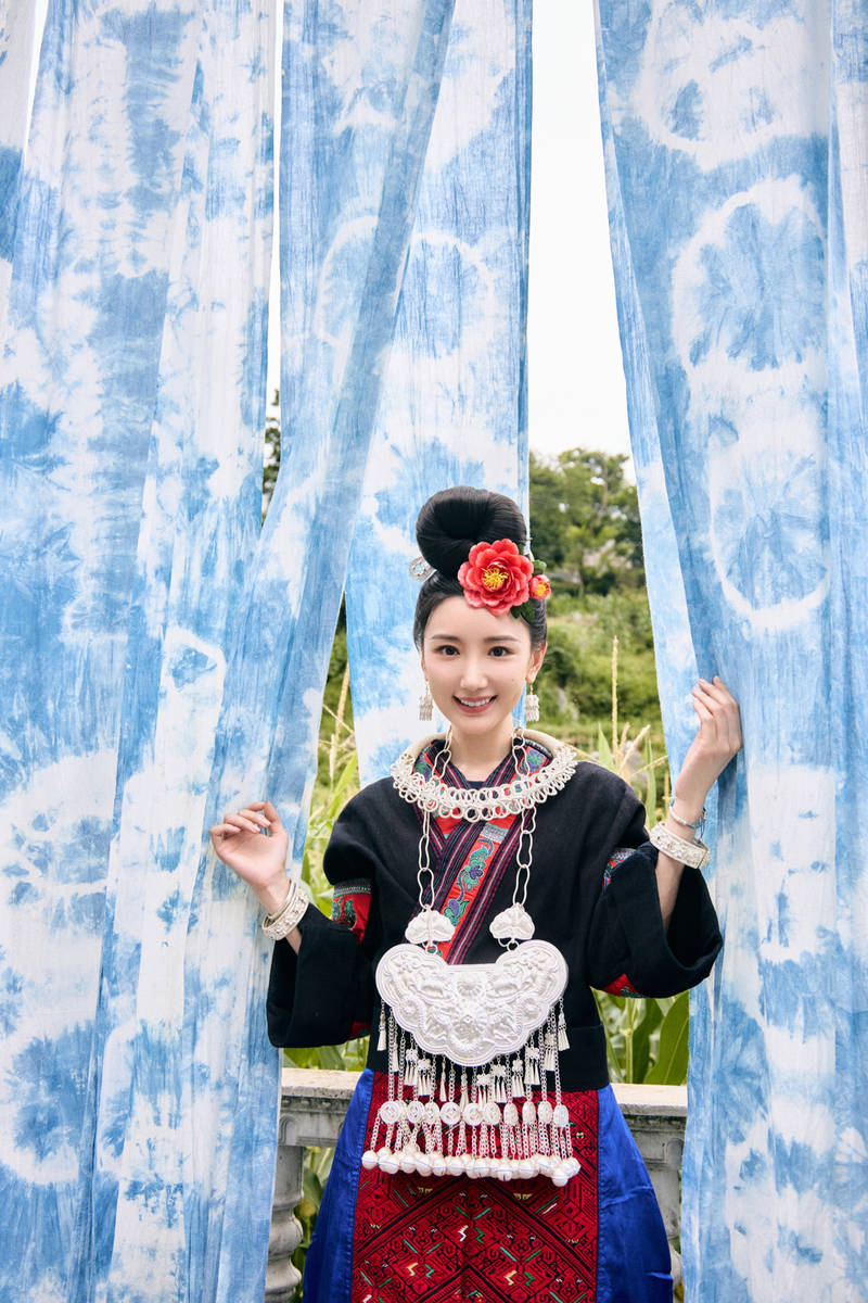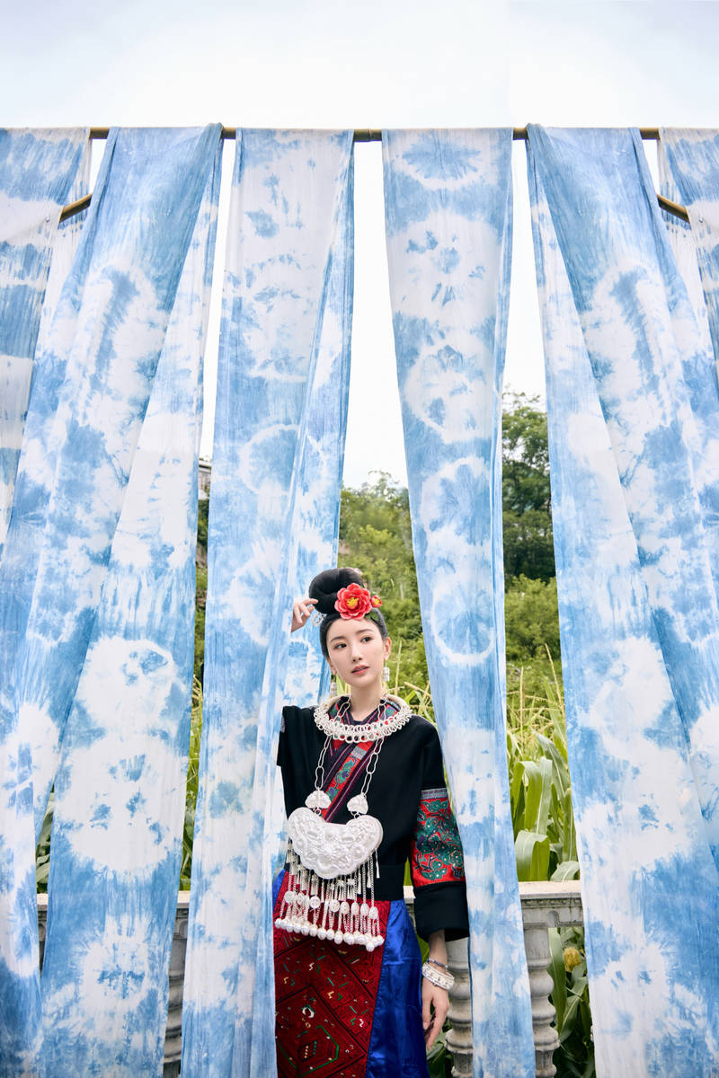 当流量明星纷纷追逐潮流单品时,毛晓彤工作室晒出的一组苗绣写真,以非遗文化为底色,惊艳了全网。“蓝染山海,银绣春秋”的配文恰如其分,照片中的她身着承载着千年技艺的苗绣服饰,站在贵州山野间,甜美的笑容与华丽的银饰相映成趣,让藏在深山的苗绣文化,以鲜活的姿态走进大众视野,完成了一次传统与现代的完美对话。