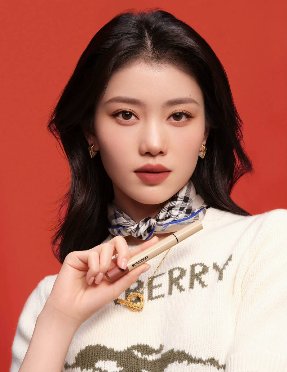 红色背景的选择,更是让这组大片的视觉张力拉满。红色本身就具有热烈、鲜明的情感属性,作为背景色能够瞬间抓住观众的目光,为整个画面奠定热情洋溢的基调。沈小婷的造型与红色背景形成了完美的互动,黑发与红唇在红色背景的映衬下更显鲜明,格纹丝巾的黑白格纹则在红色的衬托下更具辨识度,让整个画面的色彩层次更加丰富。从光影运用来看,大片采用了柔和的光线处理,避免了红色背景可能带来的刺眼感,同时让人物的皮肤质感更显细腻,造型的细节也得以清晰呈现。这种“人物造型与背景氛围”的精准匹配,让整个大片的主题更加鲜明,视觉效果更加惊艳。