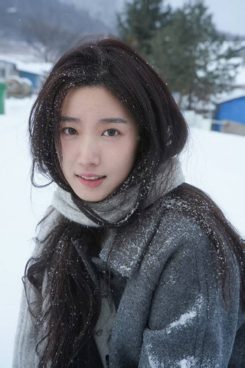 造型的成功,更离不开卢昱晓自身气质与穿搭风格的高度适配。她的五官精致柔和,自带纯净澄澈的气质,而素雅的深灰穿搭恰好放大了这一特质,没有过多装饰的干扰,让她的原生美感得以充分展现。妆容方面,她选择了极简的伪素颜妆容,清透的底妆贴合肌肤,自然的眉形勾勒眉眼轮廓,浅粉色唇妆提亮气色却不张扬,与整体素雅的造型基调完美呼应。这种“穿搭为气质服务”的思路,让造型与人物融为一体,避免了“衣穿人”的尴尬。无论是端坐雪中的安静浅笑,还是抬手拂去肩头落雪的灵动瞬间,都让深灰大衣造型有了灵魂,也让“素雅干净”不再是单纯的穿搭标签,而是成为一种由内而外的气质表达。
